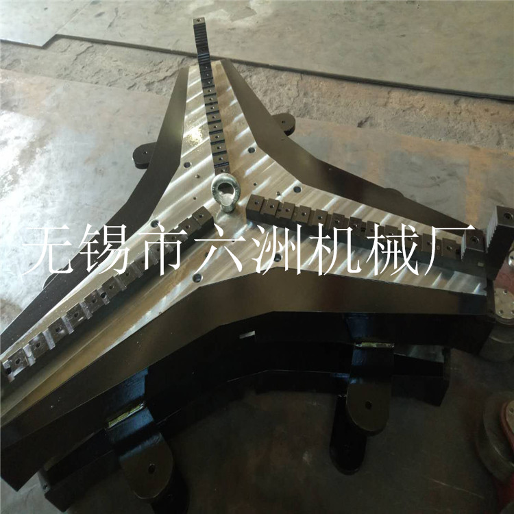 我公司为焊接切割机械开发设计的WPT系列自定心卡盘,精度高、机构轻巧、操作方便灵活、不变形、不会出现卡死现象。承载能力强,常规产品自定心夹持范围可达2.5米,广泛应用于焊接变位机切割机等自动化设备,极大的提高工件装夹速度。该卡盘已成功应用于数控钻设备钻切法兰,可实现卡盘超大盘径自定心的特点、并保证夹持力度,提高焊接、切割生产作业效率,满足大批量生产的要求。